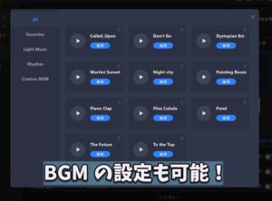 現在は11パターンのBGMが用意されています。どれもボイスが長くなっても綺麗にループするタイプのBGMになっていてバックグラウンドミュージックとして適切です。